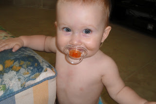 Lilly is always happy as along as Mommy is holding her, which makes me feel good :) Brayden never really cared one way or the other who had him, but Lilly is a Mommy's girl through and through. I am sure that this will change before too long though! She is a very determined little thing. She KNOWS what she isn't supposed to get into (TV electronics, cat food/water, etc), but goes straight for those things and then turns back to look & see if she is being watched before messing with them. If she gets caught and you say "NO!", she immediately starts crying. Of course, as soon as she is done crying, right back at it she goes!